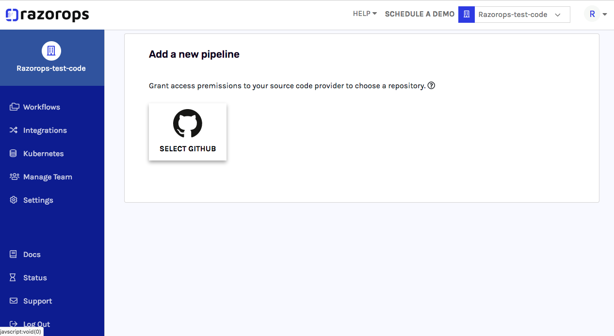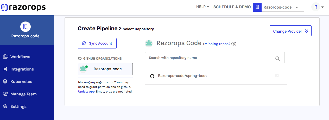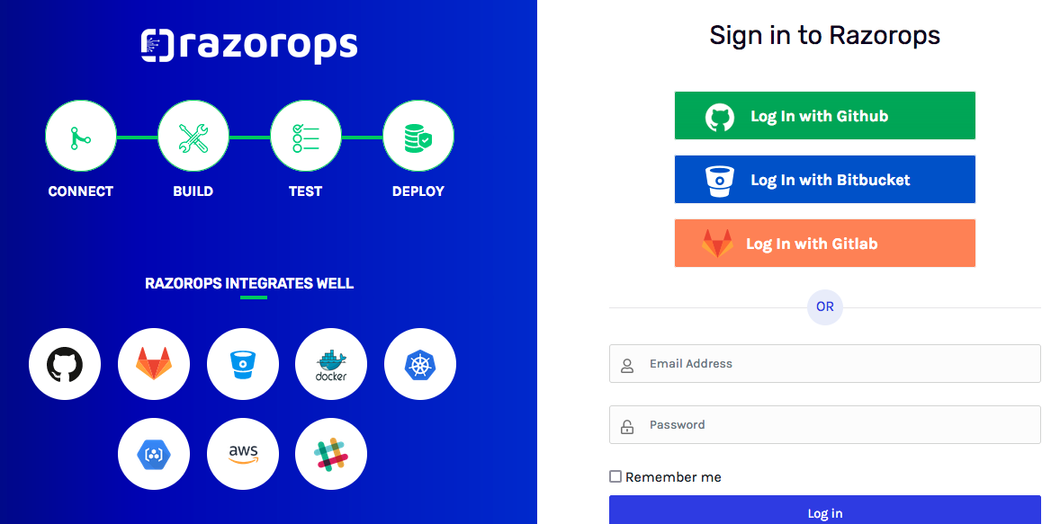 Login to RazorOps with repository(github/bitbuket/gitlab):-