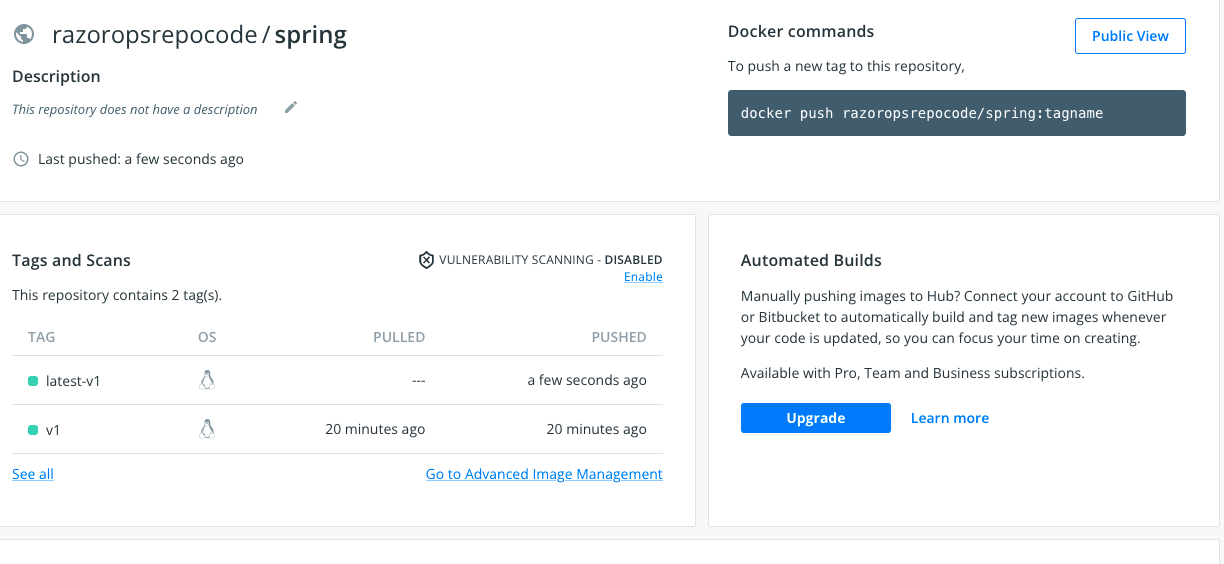 sh 'docker build -t razoropsrepocode/spring:v1 .'