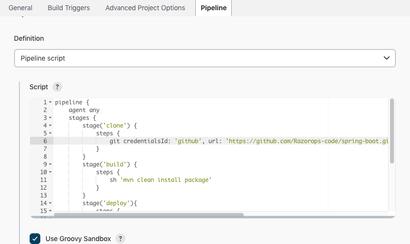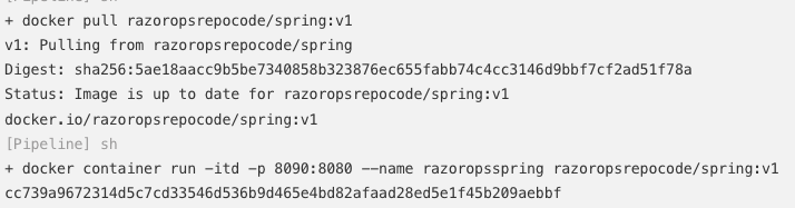 sh 'docker container run -itd -p 8090:8080 --name razoropsspring razoropsrepocode/spring:v1'
