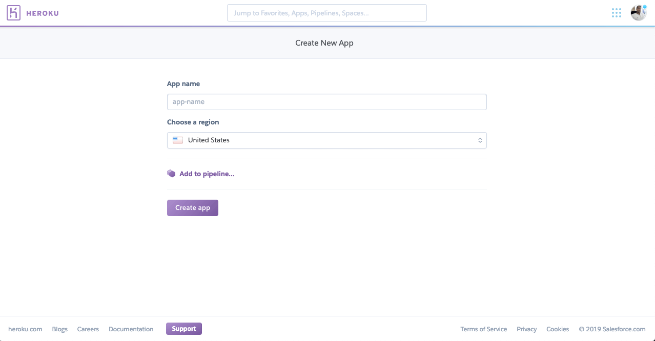 2) Create an App in side Heroku